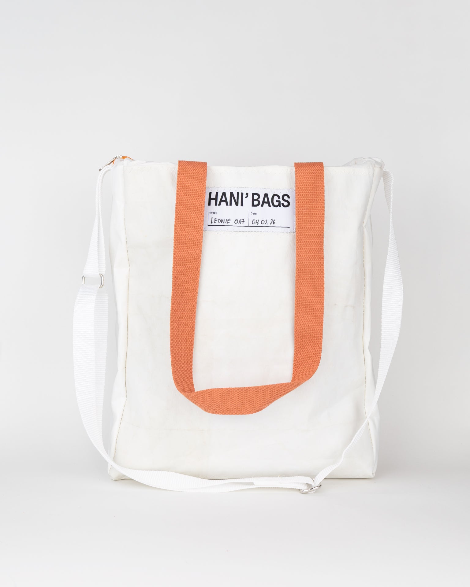 HANI'BAGS are handcrafted bags made from recycled sailcloth material. Each HANI'BAG breathes new life into sails that have journeyed across seas and eventually worn out from their original purpose. The sailcloth, shaped by wind and weather, varies in structure, texture, and strength. Naturally durable and designed to withstand water and salt, this material makes each HANI'BAG unique, carrying the stories of the sea.