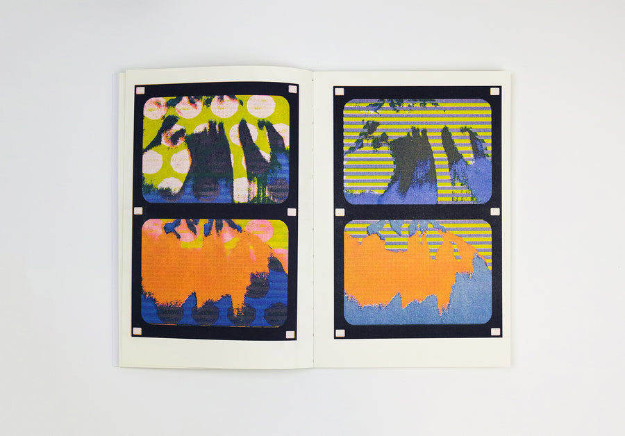 Artworks in Tivoli have a recognisable visual identity that echoes 90s VHS aesthetics. Even though this sort of imagery was revived through the visual zeitgeist of vaporwave or hauntology, Suosalo manages to implement it without falling into a cheap nostalgia trap. Tivoli is printed on a risograph machine with recognisable grain present on the images, which adds another layer of visual stimulation to the images.