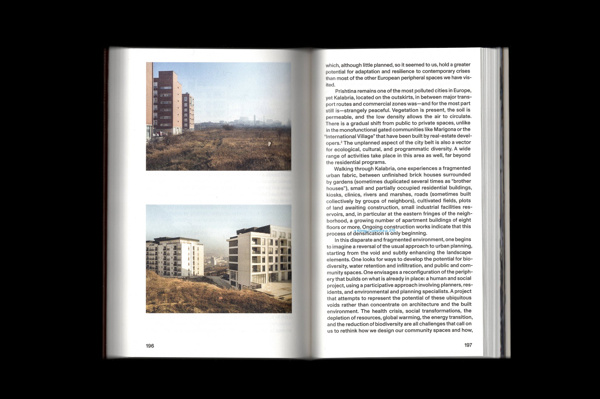 The book contains contributions by Alba Imeri, Ana Dragić, Andrra, Anna Di Lellio, Antigonë Isufi, Antonia Young, Arbër Sadiki, Arnisa Kryeziu, Arta Basha Jakupi, Aurela Kadriu, Bardhi Haliti, Besa Luci, Carlo Ratti, Daniele Belleri, Dion Zeqiri, Donika Luzhnica, Eliza Hoxha, Ena Kukić, Erodita Qehaja, Erzë Dinarama, Fitore Isufi Shukriu, Flaka Haliti, Flakë Zeneli, Gil Boesch, Gjergji Islami, Gresa Kastrati, Guillaume de Morsier, Gyler Mydyti, Ilir Bajri, Ilir Gjinolli, Iliriana Sejdullahu, Ines Demiri, Jean-Arnault Dérens, Jeton Neziraj, Jonas König, Kai Vöckler, Krenare Juniku, Lydra Hoxha, Martin Pohl, Maximilian Hartmuth, Mirjeta Qehaja, Nebojsa Milikić, Nick Ames, Nita Deda, Nora Krasniqi Arapi, Predrag Guberinić, Rozafa Basha, Ruth Duma Coman, Sakibe Jashari, Sali Spahiu, Samir Karahoda, Shkumbin Ahmetxhekaj, Shpresa Jashari, Sokol Beqiri, Sokol Ferizi, Toton, Valentin Kuník, Visar Geci and Vladimir Kulić.